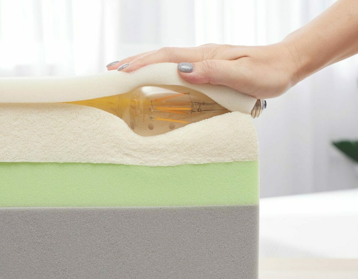 同時,也是全台首創結合氣墊綿材質的無彈簧床墊,所謂的全綿床墊是經長期研發實驗後,使用不同性質種類的海綿材質,依據承重特性與比例,組合多層次堆疊而成,提供透氣柔軟且同時具有支撐力的包覆感,打造出符合人體工學的舒適感。